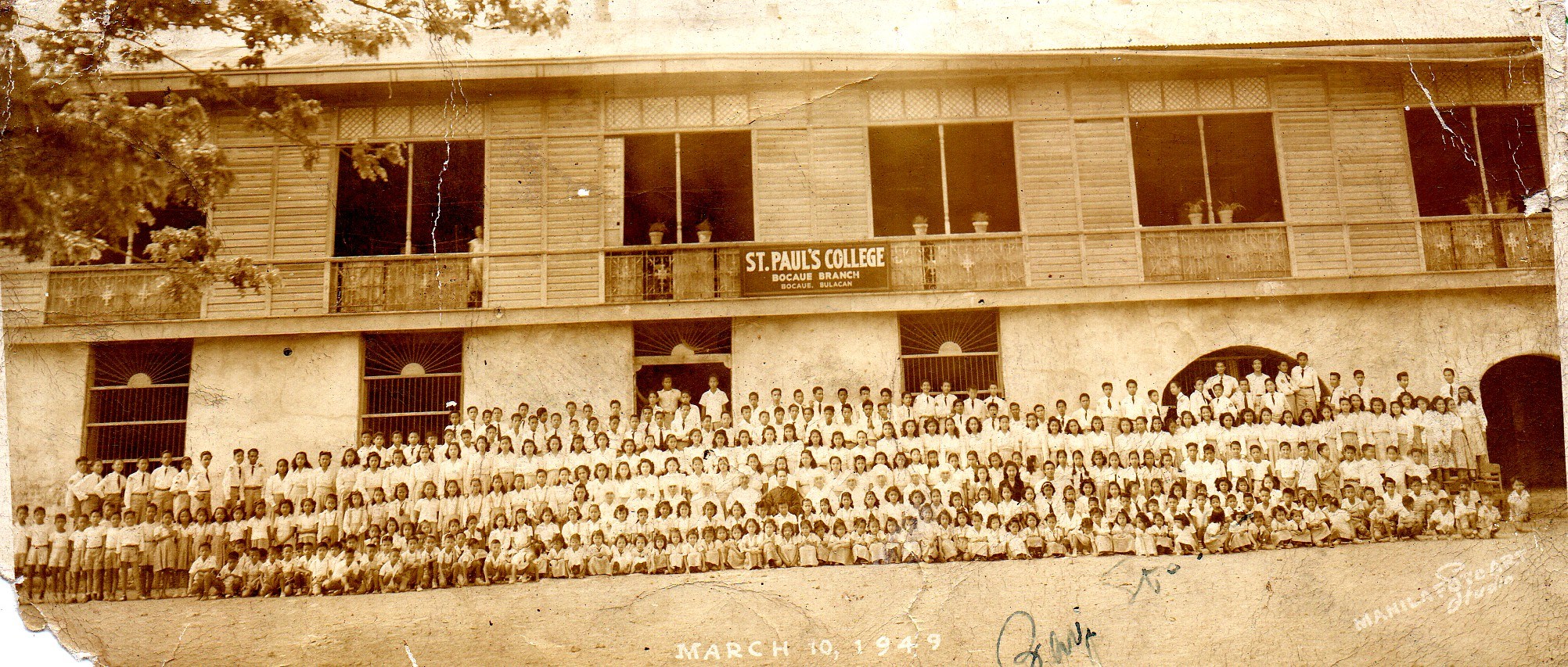 On June 12, 1945 the Sisters of St. Paul arrived in Bocaue. The pioneers were Sr. Albine du Sacre Coeur Garcia, Superior, Sr. Augustin de Jesus Roxas as Principal, Sr. Maria Esperanza Oben, Sr. Julie Pierre Mapanao, Sr. Marie Gertrude Mandia, Sr. Pierre de Jesus Peña, Sr. Maria Consejo Gureb, and Sr. Angel Joseph Parayno, classroom teachers, Sr. Maria Josefa Grey, piano teacher; Sr. Paz of the Sacred Heart Eco, cook; Sr. Maria Remedios Docog, in charge of linen and Sr. Cayetana Pagulayan, laundry supervisor.